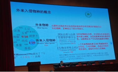 新疆植物保护学会付开赟副研究员以《新疆外来入侵生物的现状及绿色防控》为题,现场展示苹果蠹蛾、豚草等入侵生物的显微图片与实物标本,详细解析其传入途径、对农业生产及生命健康的危害,帮助新生牢固树立生态安全意识。