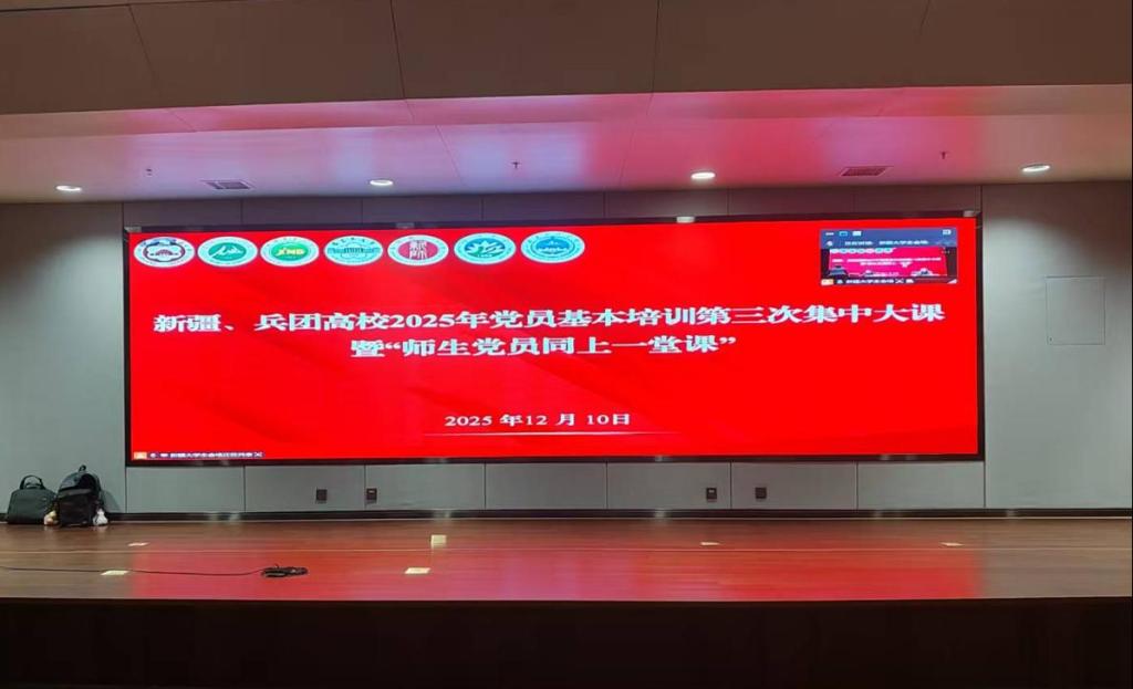为全面落实党中央关于高校党建基础培训工作的部署要求,深入贯彻教育部、自治区党委、自治区教育工委、自治区教育厅及兵团教育局的具体工作安排,健全高校党员常态化教育培训机制,明晰新时代新征程高校党员教育工作的前进方向,自治区、兵团高校“2025年党员基本培训第三次集中大课暨师生党员同上一堂课”于2025年12月10日隆重举办。本次培训特邀中央党校(国家行政学院)副校长、副院长李毅教授现场授课,我院全体党员全程参加学习。