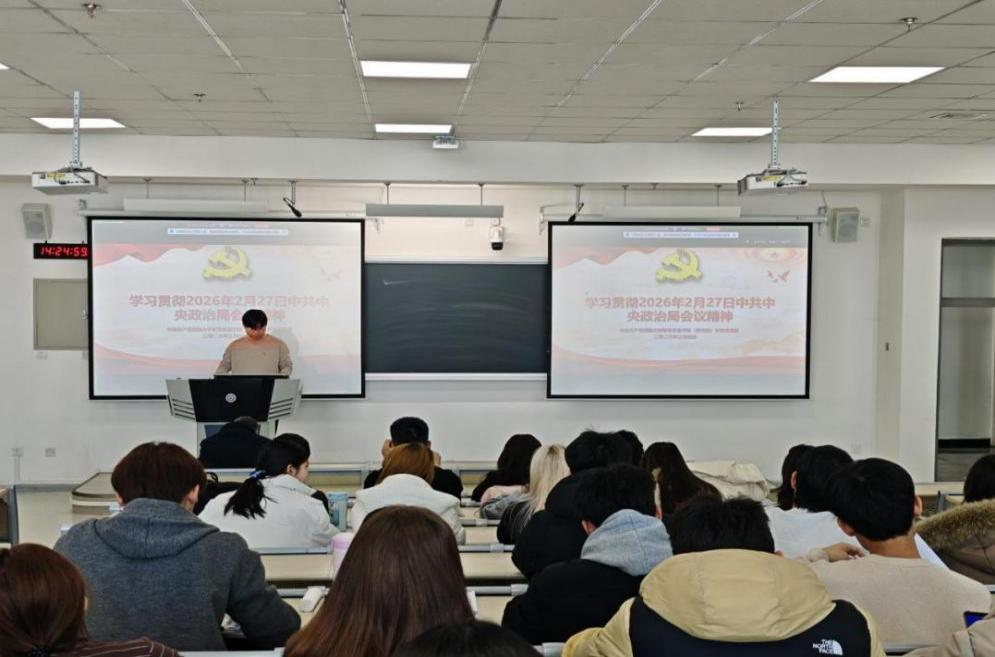 为深入学习贯彻2026年2月27日中共中央政治局会议精神,进一步统一思想、凝聚共识,智慧农业学院(研究院)学生党支部于2026年3月4日组织开展“学习贯彻中央政治局会议精神,奋力谱写高质量发展新篇章”支部书记讲党课活动。本次活动以学习会议精神为主线,结合学生党员思想实际和专业特点,推动理论学习走深走实、入脑入心。